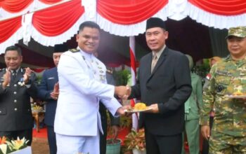 Kayong Utara – Asisten Administrasi Umum Sekretariat Daerah Kabupaten Kayong Utara, Muhammad Oma, yang mewakili Bupati Kayong Utara menghadiri kegiatan Ground Breaking Koperasi Desa Merah Putih (KDKP) secara vidcon, dan dilanjutkan acara Peletakan batu pertama pembangunan fisik gerai Koperasi Desa/Kelurahan Merah Putih (KDKMP) di Desa Pangkalan Buton Kecamatan Sukadana, Jumat (17/10/2025).