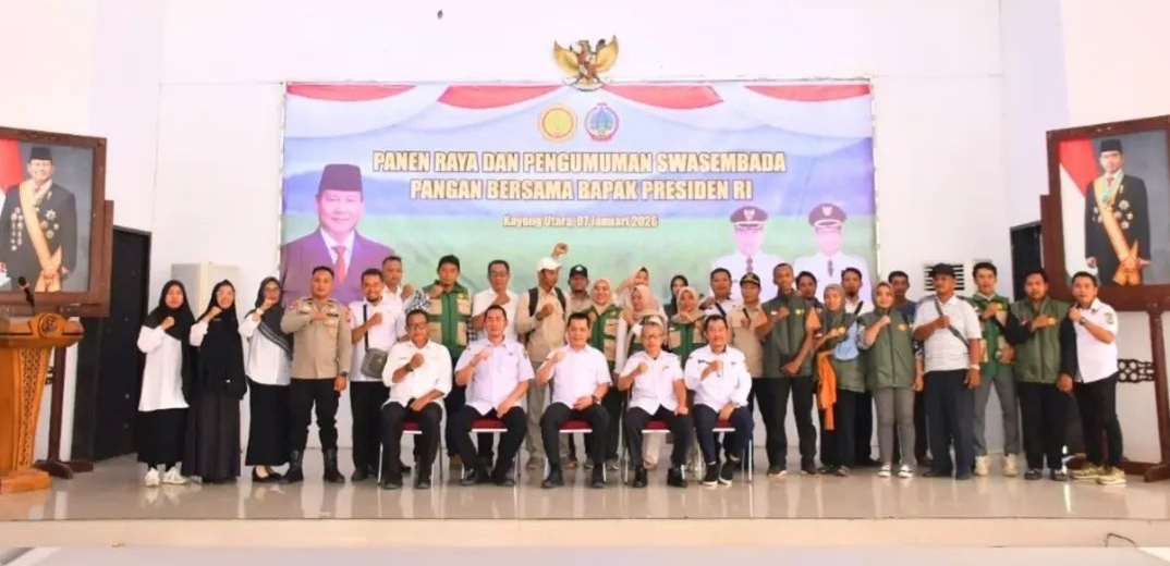 Dukungan ini diwujudkan melalui hadirnya langsung Bupati Kayong Utara, Romi Wijaya, bersama Sekretaris Daerah Kabupaten Kayong Utara dan jajaran OPD, pada kegiatan Zoom Meeting Panen Raya dan Pengumuman Swasembada Pangan bersama Presiden Republik Indonesia beserta jutaan petani di seluruh Indonesia, bertempat di Aula Pondopo Bupati Kayong Utara, Sukadana, Rabu (7/1/2026).