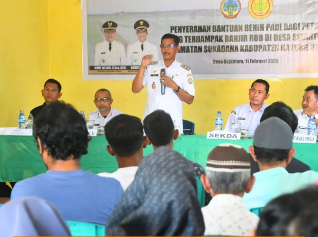 Penyerahan bantuan tersebut, dilakukan secara simbolis oleh Wakil Bupati Kayong Utara, Amru Chanwari kepada petani Desa Sejahtera, berlangsung di Gedung Serbaguna Desa Sejahtera, Kecamatan Sukadana, Rabu (11/2/2026).